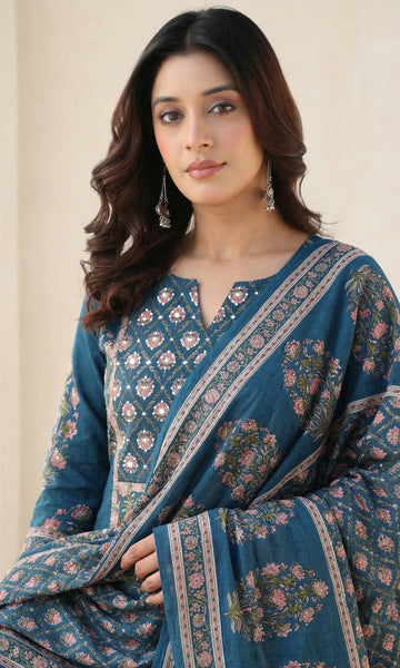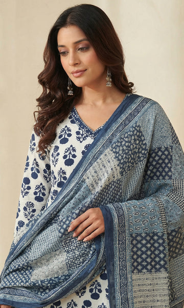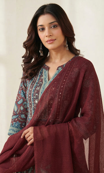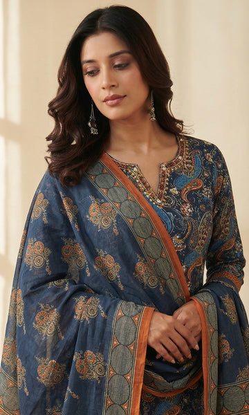 Exhibiting a soothing hues, this hand block-printed garment exemplifies expert craftsmanship. Tailored in soft organic...
