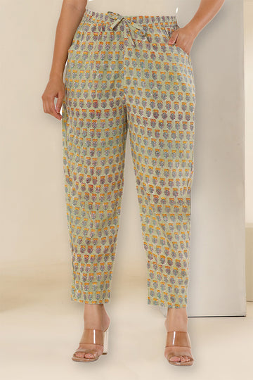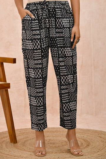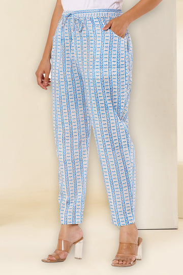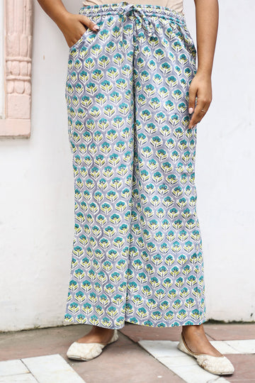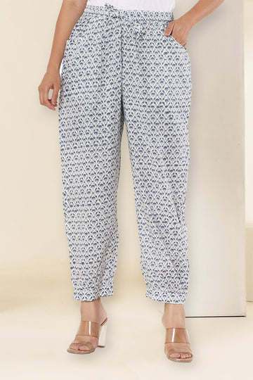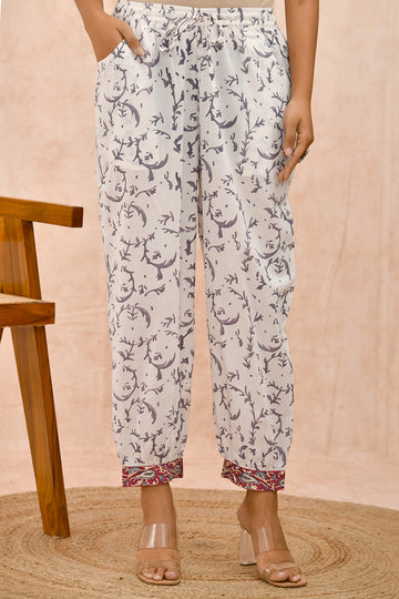 Off White and Grey Printed Organic Cotton Balloon Pants