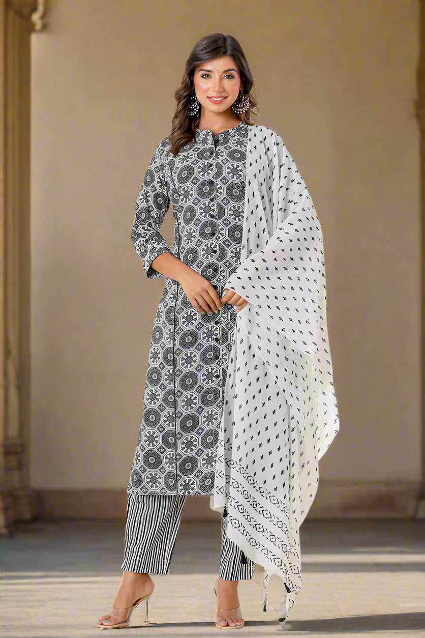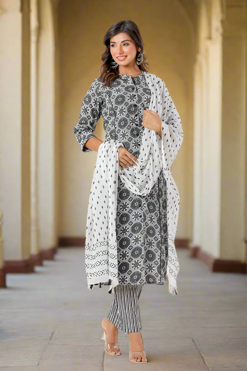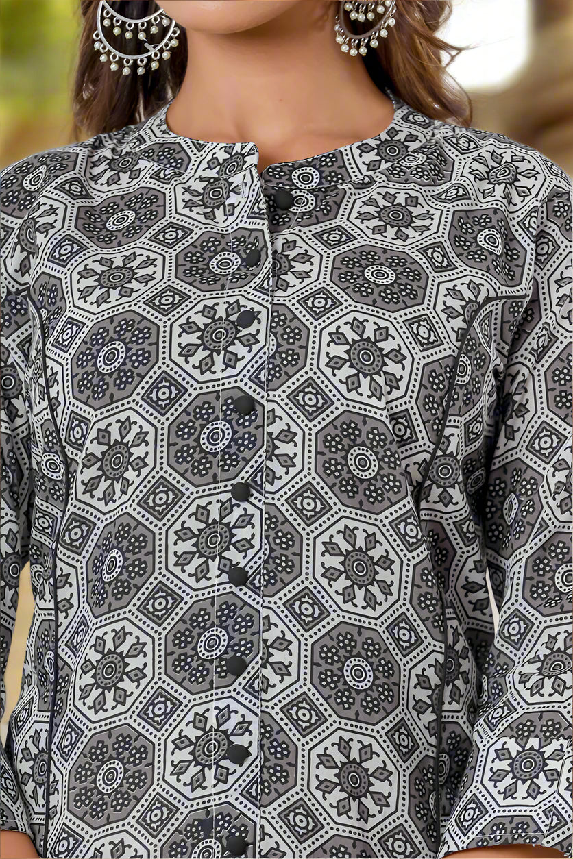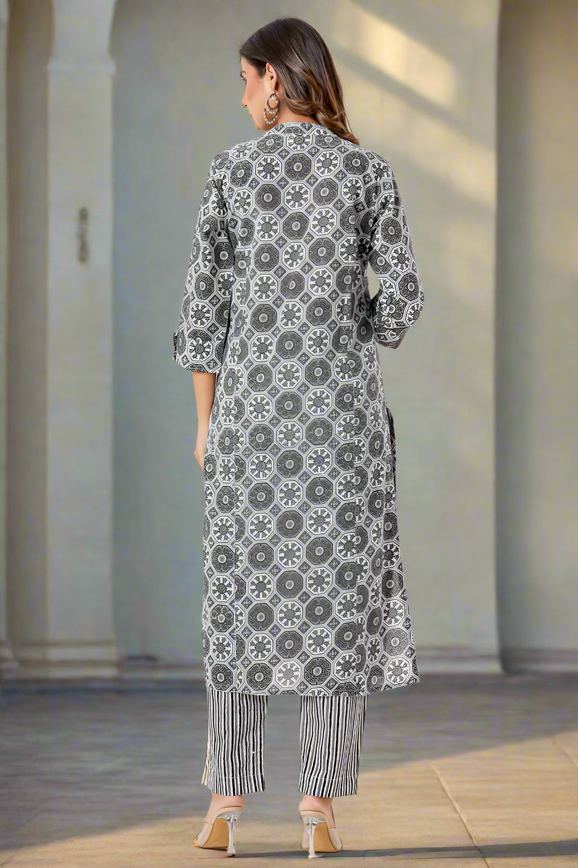 Black Grey Organic Cotton Straight A Kurta