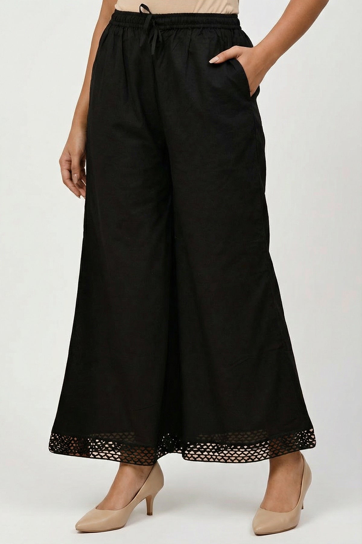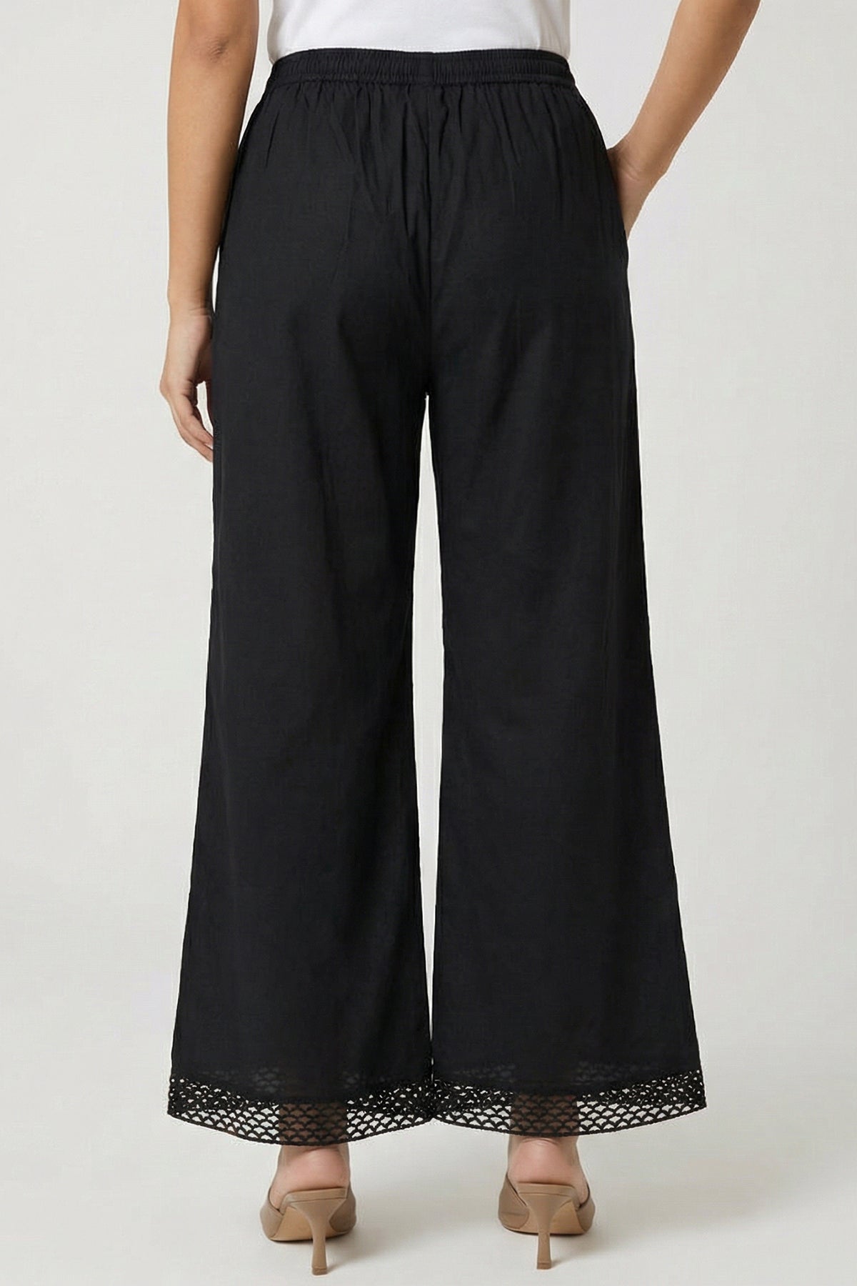 Black Organic Cotton Palazzo with Schiffli Lace