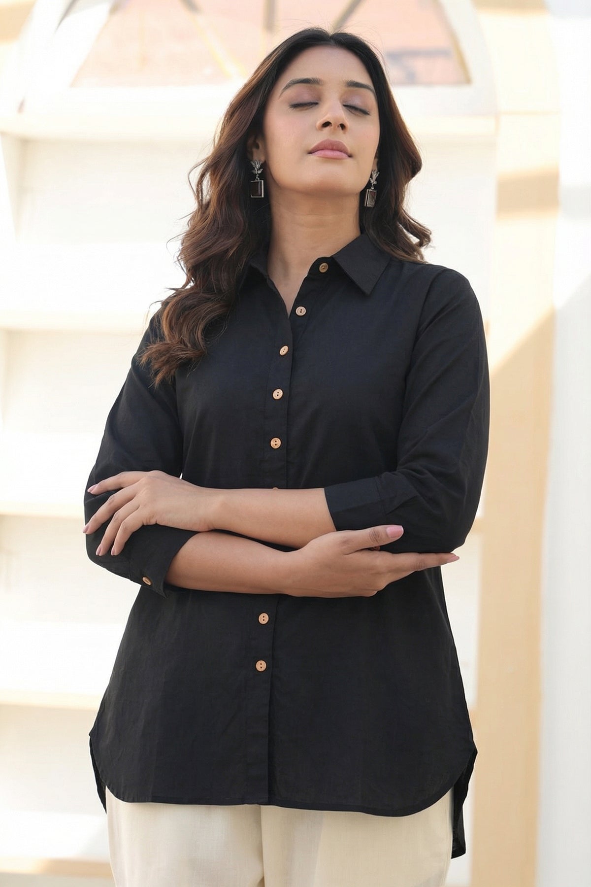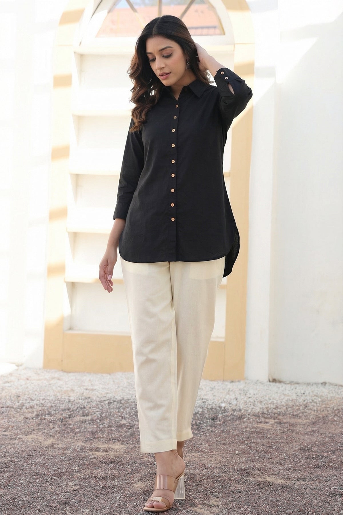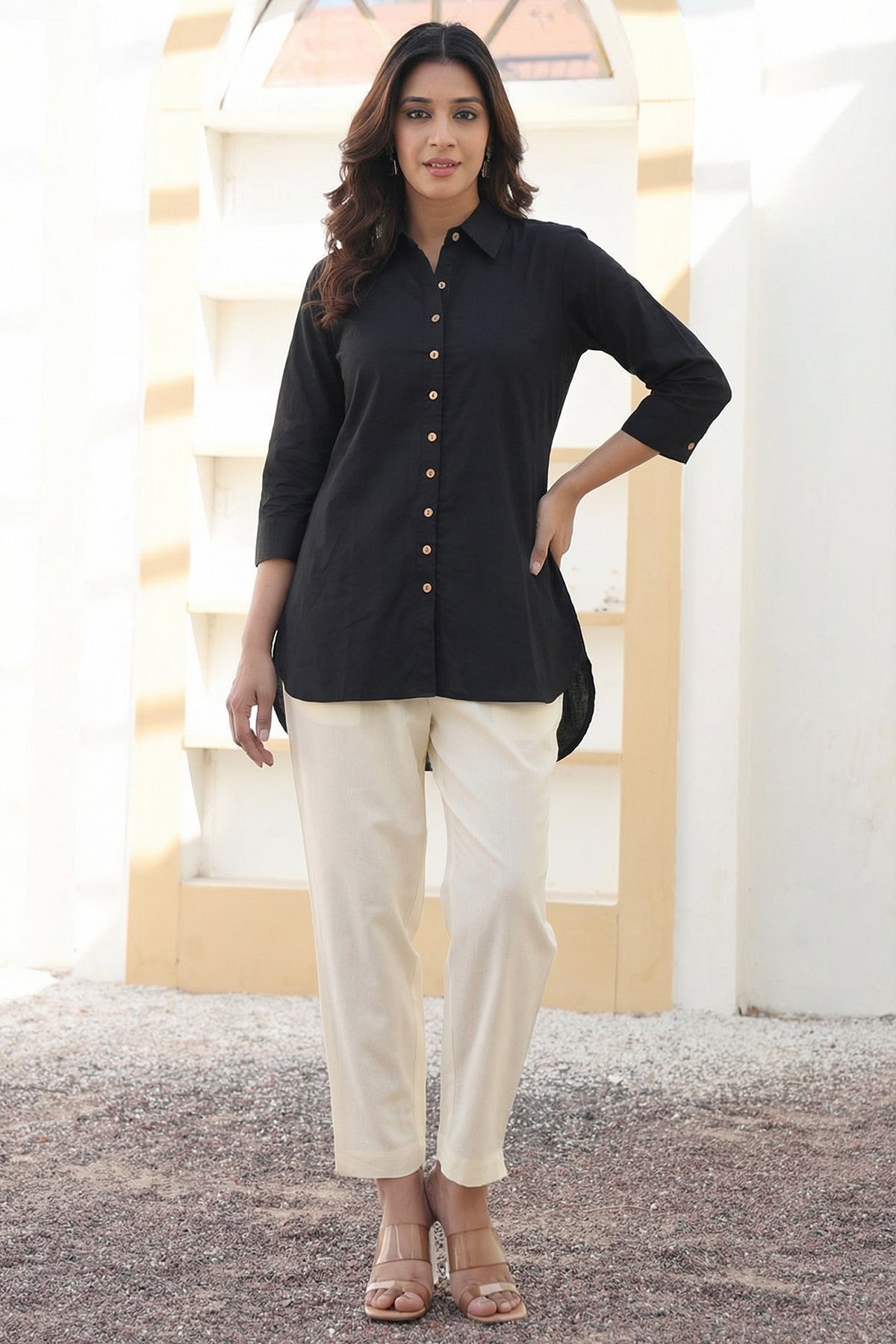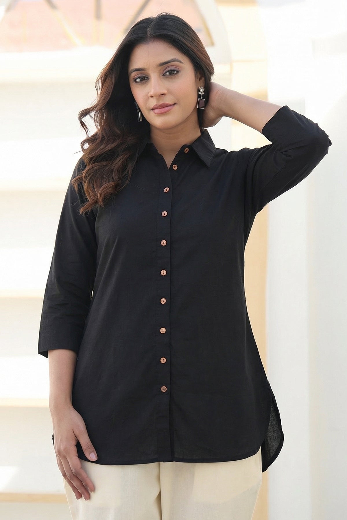 Black Organic Cotton Shirt Short Kurta