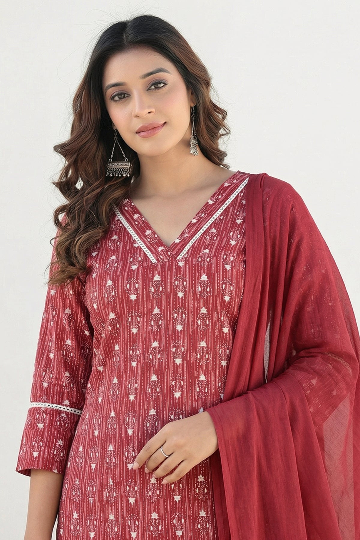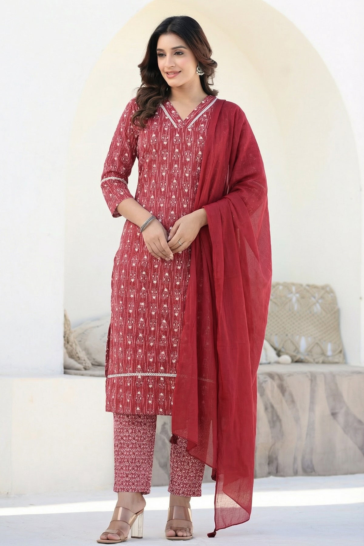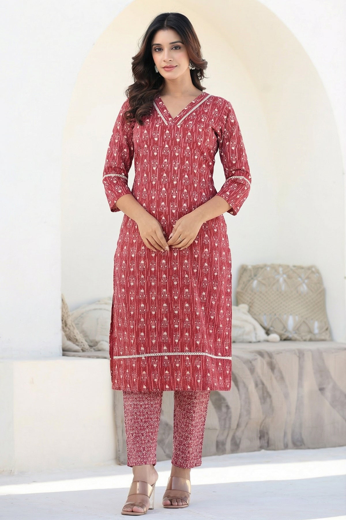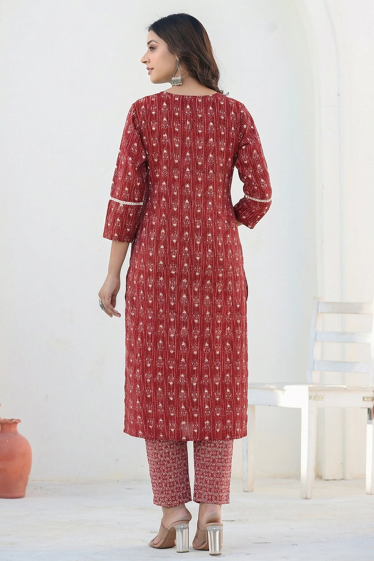Red Straight Kurta Pant Suit Set