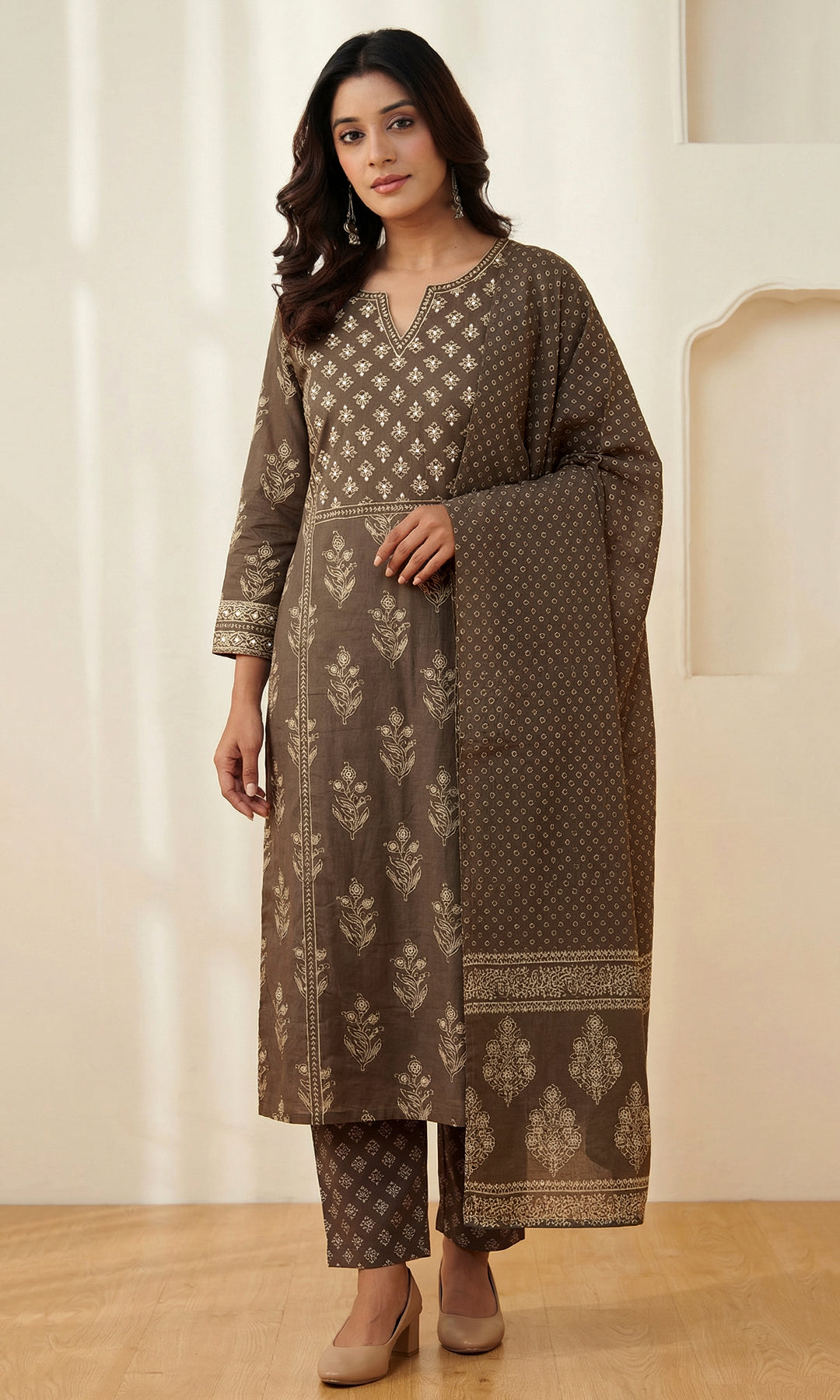 Brown Cotton Straight Kurta