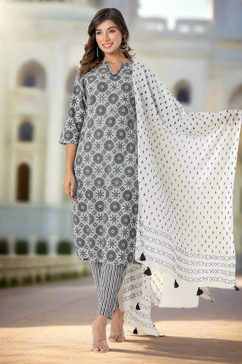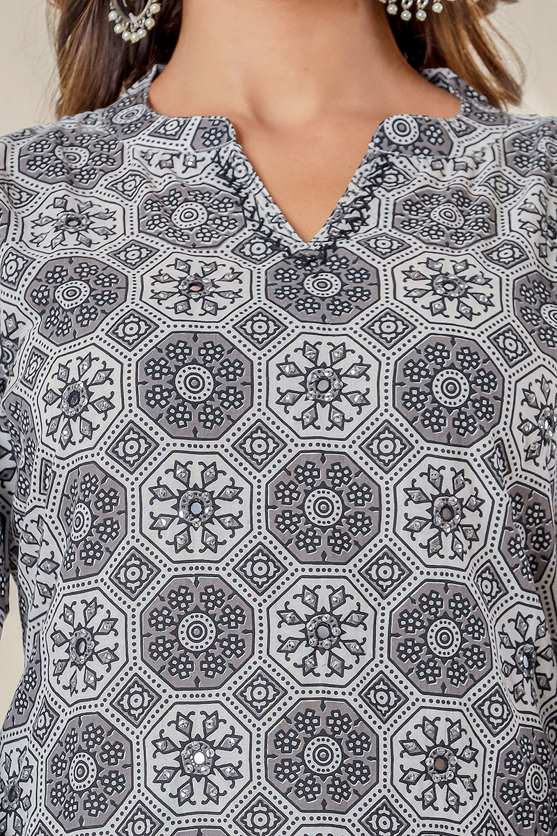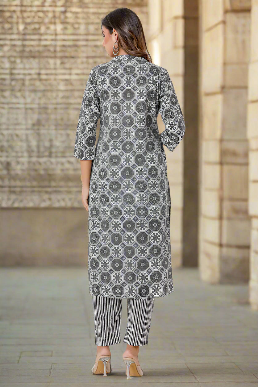 Black Grey Organic Straight Cotton Kurta