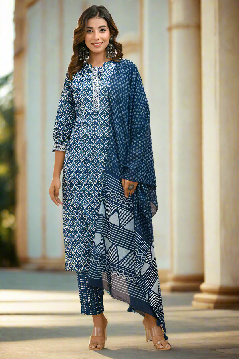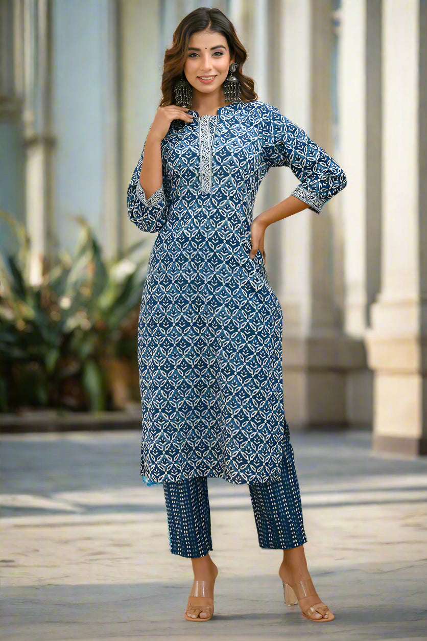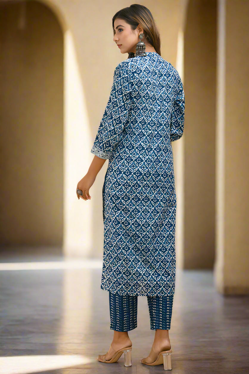 Indigo Handblock Printed Organic Cotton Straight Kurta