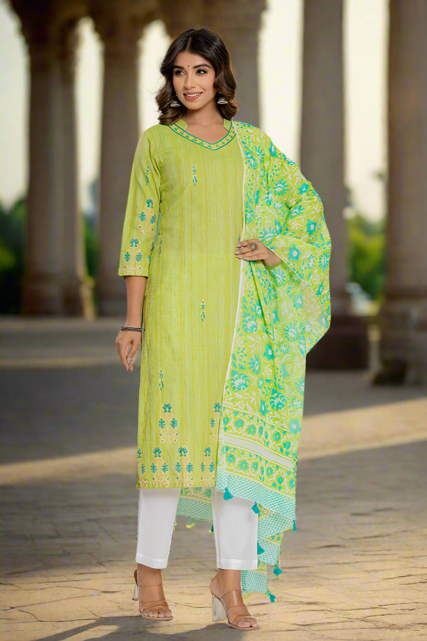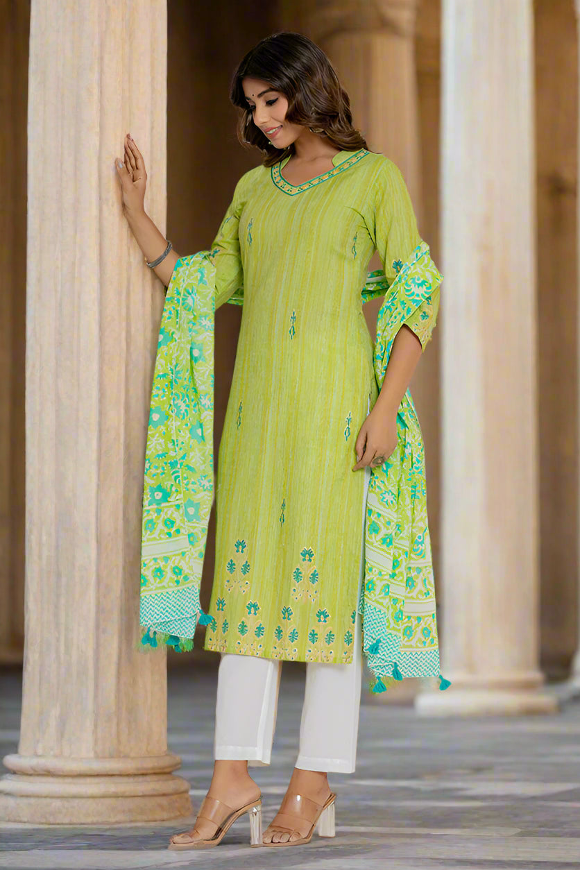 Green Printed Mulmul Dupatta