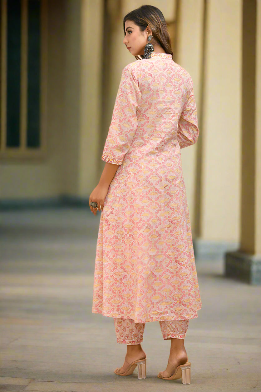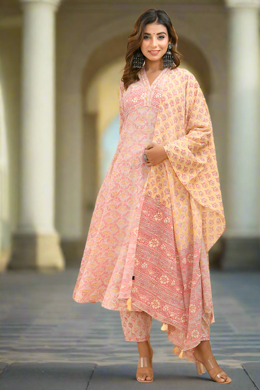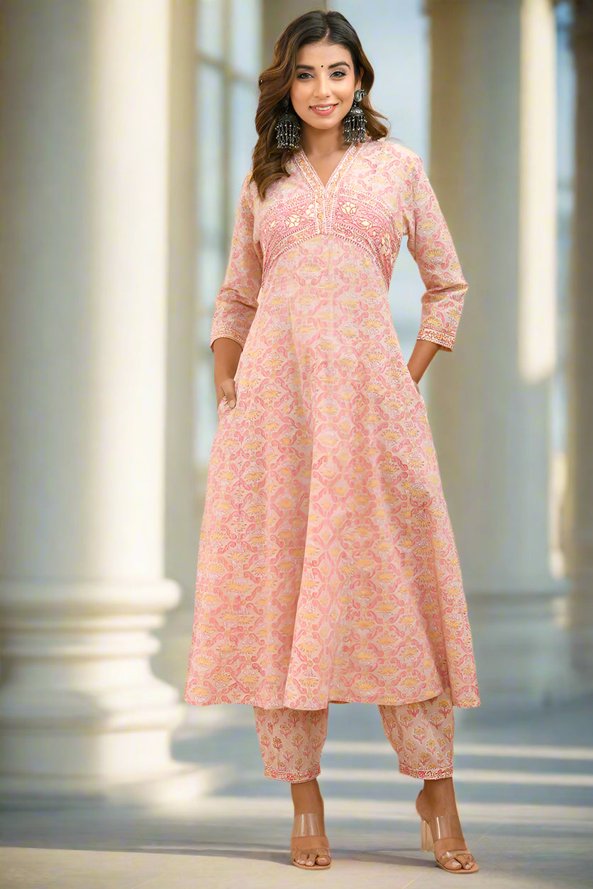 Peach Puff Organic Cotton Anarkali Kurta with Pockets