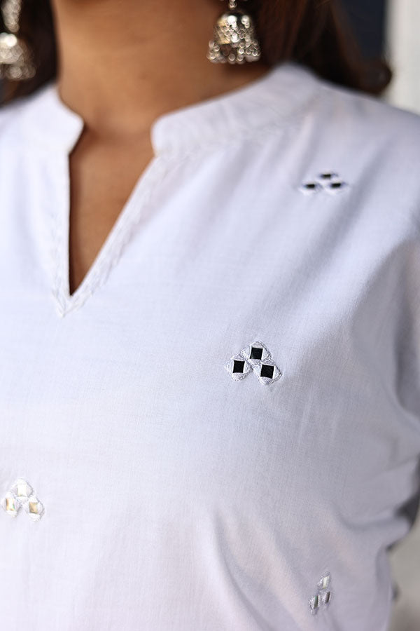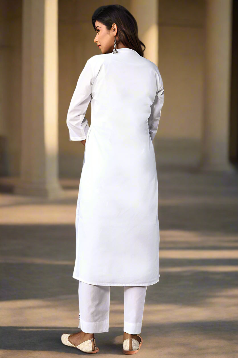 Pure White Organic Cotton Straight Kurta with Pockets