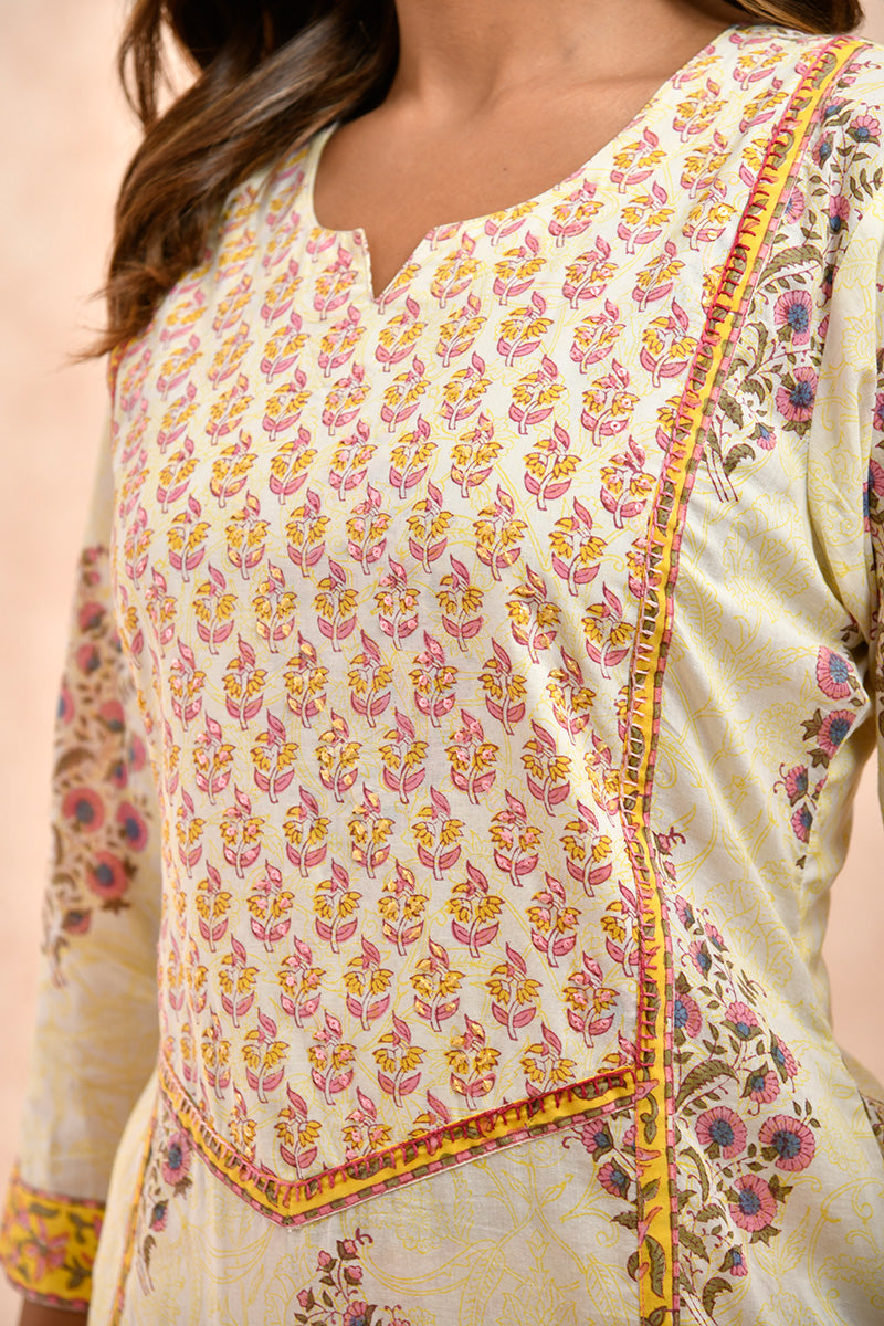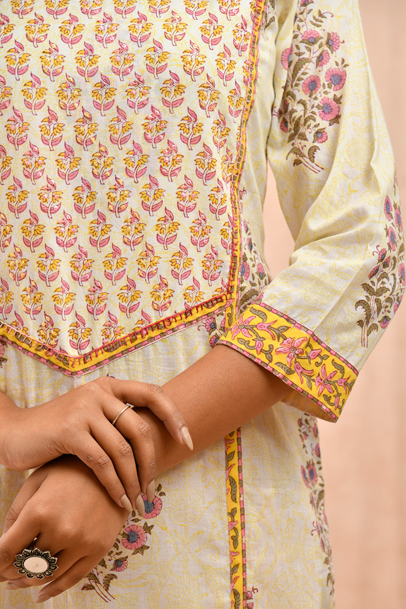 Pastel Yellow Organic Cotton Straight Kurta with Pockets